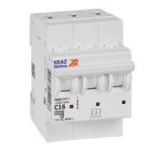 Модульный автоматический 3 полюсный выключатель переменного тока с предельной коммутационной способностью при переменном токе 4,5 кА на номинальный ток 25 А.